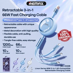 Кабель USB - 8 pin Lightning+Micro usb+Type-C Remax RC-C029 силикон белый плоский 1,2 м. 66W