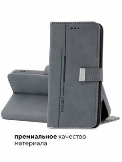 Товар «Чехол-книжка Samsung S22 Plus серый горизонтальный с магнитом Kruche Flip Classic» добавлен в корзину