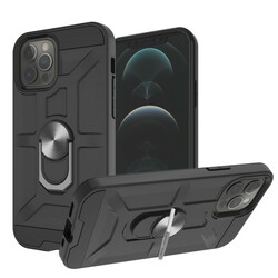 Накладка Apple iPhone 15 Pro Max черный силикон+пластик Armor Case Противоударный кольцо-подставка + магнитный держатель