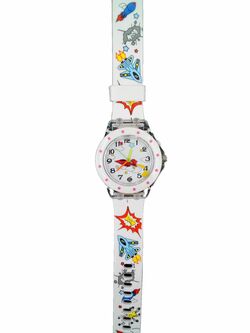 Товар «Наручные часы детские кварцевые Принт Самолет белый силиконовый ремешок» добавлен в корзину